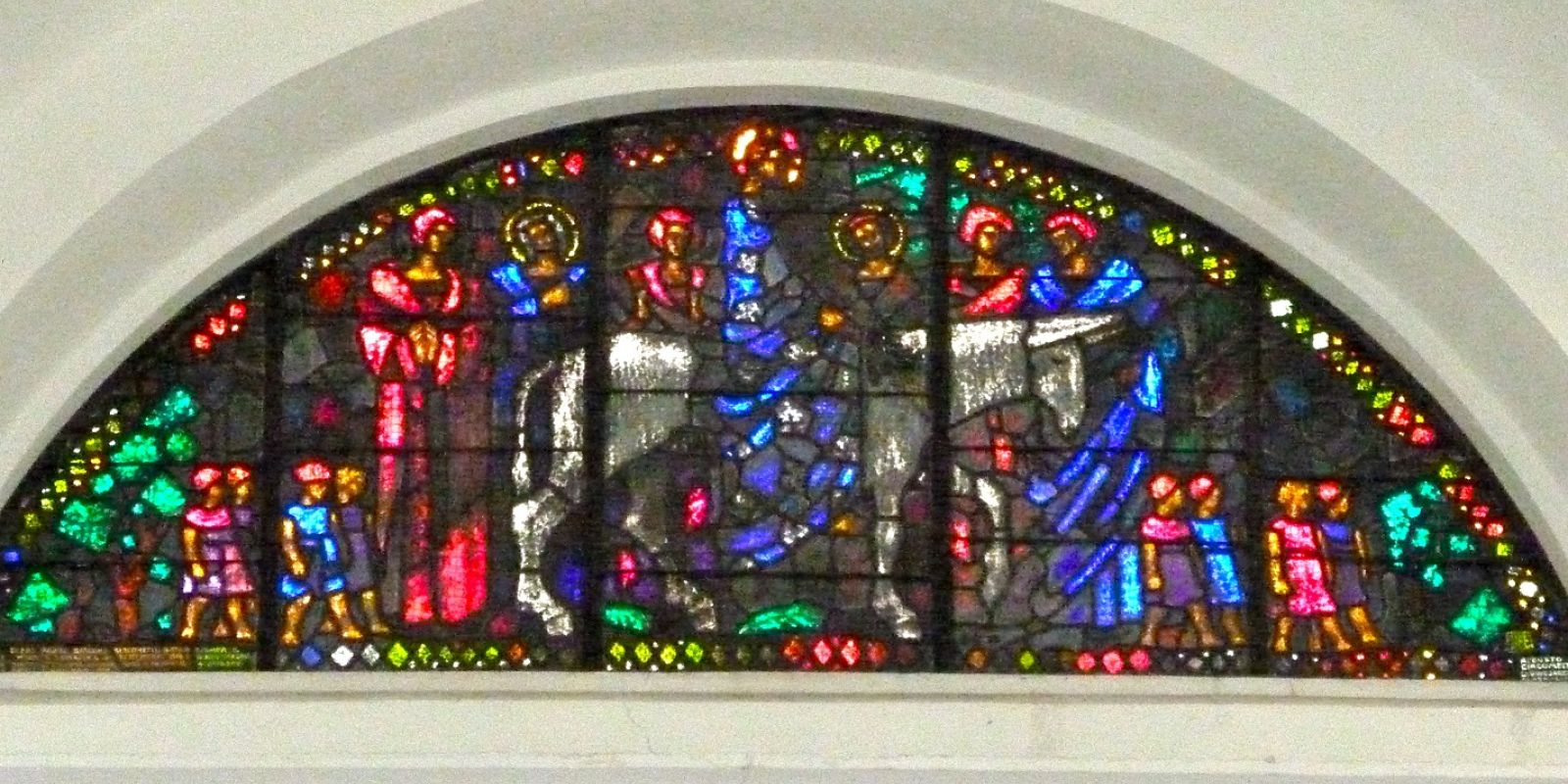 Nella foto: "Entrata di Gesù a Gerusalemme", Augusto Giacometti, vetrata, Chiesa riformata di Stampa (Wikipedia)