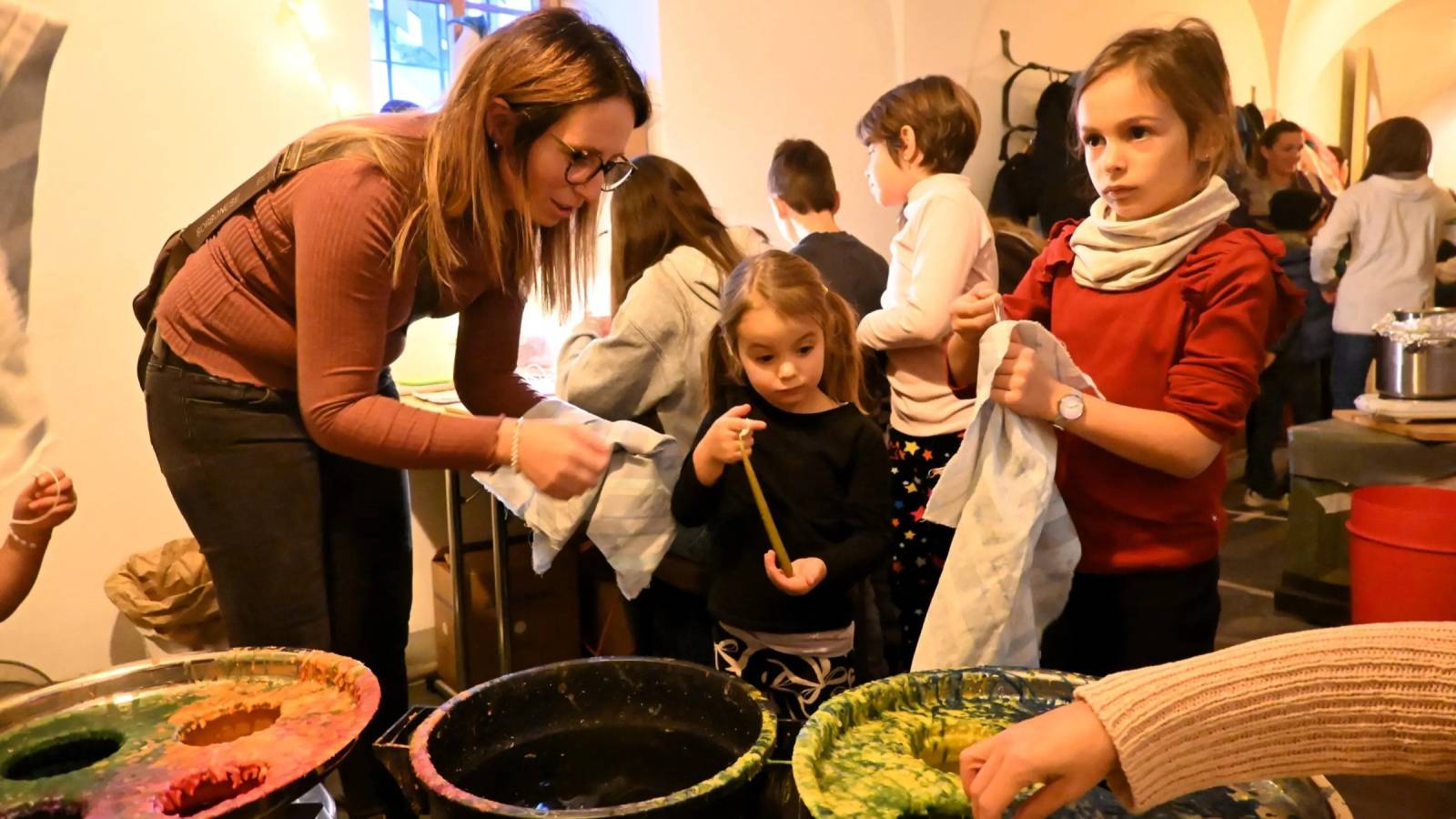 A farla da padrone, ovviamente i più piccoli, indaffaratissimi con la fabbricazione delle candele. Ma affollati anche i tavoli su cui sono state realizzate, sotto la guida di Michela Crameri, grandi e piccole corone d’Avvento.