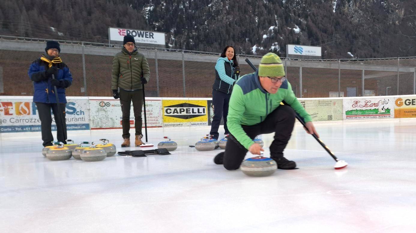 In gergo aziendale una simile attività è definita "rafforzamento dello spirito di gruppo": è quanto ha fatto, domenica sera, 15 febbraio, il Concistoro della Chiesa riformata di Poschiavo, sulla pista di ghiaccio di Le Prese, cimentandosi con il lancio delle pietre del "Curling".