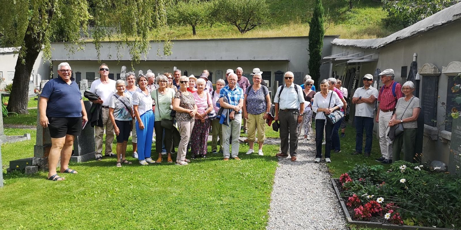 Martedì mattina, 13 agosto, il pastore Paolo Tognina ha guidato un folto gruppo di persone, proveniente da Zernez, durante una visita alla chiesa e al cimitero di Poschiavo. I visitatori, una quarantina, erano accompagnati da Hermann Thom, operatore sociale, e dalla pastora riformata di Zernez, Rebecca Giselbrecht. I partecipanti – cattolici e riformati, del gruppo ecumenico della Terza età di Zernez – hanno seguito una breve introduzione alla storia religiosa della Valposchiavo, alle vicende legate all’emigrazione, alla recente accoglienza dei profughi ucraini. Attraversando in seguito il cimitero, il gruppo si è fermato davanti alla tomba del pastore Giovanni Luzzi, il traduttore della Bibbia originario di Tschlin/Strada, nella Bassa Engadina. Il pastore Tognina ha brevemente ricordato la vicenda di Luzzi e la sua grande opera.